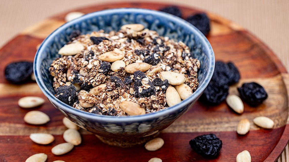 Tip: Kombinace vloček s mandlemi a sušenými švestkami se skvěle hodí k podzimu. Studie ukazují, že sušené švestky dokážou zpomalit osteoporózu a vylepšit trávení, zvlášť u žen po menopauze. Zdravá dávka je kolem pěti sušených švestek denně, to je asi 100 kilokalorií.